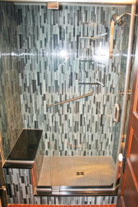 • Bathroom (6’9″ x 7’5″) – Stainless Vanity Top, Toilet, Tiled Shower w/ Seat, Painted Walls, Tile Floor