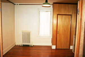 • Bedroom #1 (13′ x 16′) – Drop Ceiling, Wallpaper & Painted Walls, Wallpaper Border, Wood Floor, Closet (2′ x 7’6″)