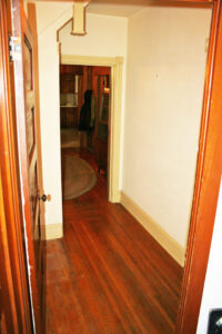 • Hall (3’3″ x 20’6″) – Wallpaper, Hardwood Floor