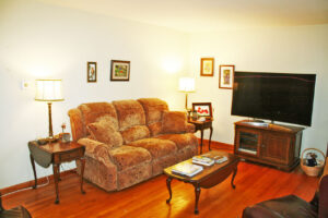 - Livingroom (13’4″ x 17’11”) – Bay Window, Painted Walls, Hardwood Floor, Lighted Guest Closet (2’10” x 3’2″)