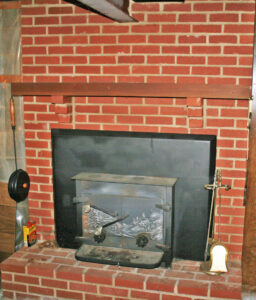 UNFINISHED FULL-SIZE BASEMENT (42’6″ x 27’6″): Brick Fireplace w/ Wood Burning Insert