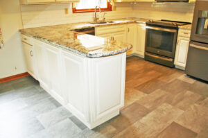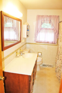 - Bathroom (6’10” x 10′) – Tub/Shower, Vanity w/ Cabinetry, Toilet, Tiled & Painted Walls, Vinyl Floor