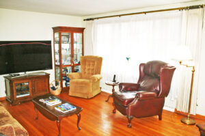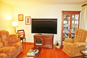 - Livingroom (13’4″ x 17’11”) – Bay Window, Painted Walls, Hardwood Floor, Lighted Guest Closet (2’10” x 3’2″)