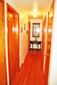 - Hallway (3′ x 14’8″) – Painted Walls, Hardwood Floor, Hall Closet (2′ x 2’4″)