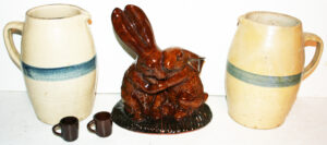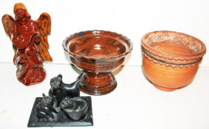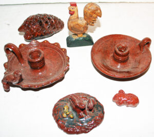 REDWARE/POTTERY: Redware Breininger Sitting Dog, Foltz Decorated Handled Jug, Jerry Beaumont Blue Decorated Handled Pitcher, Foltz Peacock, Benington Type Handled Pitcher, Redware ABC Plate, Bowls, Redware Bowls, Foltz Redware Christmas Family, Foltz Unglazed Miniature Figures, Breininger Charger, Foltz Redware Cradle, Collander Cone Decorated Plate, Lidded Pot Cake Stand, Redware Cheese Cover Lid, I.S. Stahl 1938 Redware Flower Pot, Foltz Redware Compote & Figure, Contemporary Salt Glaze Crock, Foltz Trencher, Stoneware Handled Pitchers, T.H. Cowden Harrisburg Crock, Cowden & Wilcox Harrisburg PA Salt Glazed Blue Decorated Floral Crock, Foltz “Hugging Rabbits”, Stoneware Handled Mugs, German Handled Mug, Beaumont Pottery Salt Glazed Blue Decorated Double Handled Crock, Stoneware Cylinder Crocks, German Blue Decorated Handled Mugs, Redware Handled Crock, Small Albany Glazed Crocks, Pottery Handled Pitchers, Ned Foltz Pumpkin, Large Breininger Scalloped Edge Saucer, Breininger Manganese Decorated Plate, Stoneware Blue Decorated War Bonnet & Floral Decoration Double Handled Crock, Crockery & Redware Lids, Schoffield Redware Double Handle Flower Planter, Redware Turk’s Heads Molds, Foltz Redware Flower Pot w/ Saucer, Bowl, Redware Pie Plates & Plates, Foltz Redware Acorns, Bowl w/ Applied Birds, Full Body Sitting Cat, Redware Snowman & Gnome Ornaments, Beaumont Salt Glazed Pottery Handled Pitcher, Bowls, Foltz Redware Mug, Left Handed Russell Henry Pottery Ba Ba Black Sheep Creamer, Small Creamers, Handled Creamers, Foltz Ruffled Edge Bowl, Oval Bowl, Small Plates, Beaumont Stoneware Salt Glazed Blue Decorated Small Planters, Salt Glazed Blue Decorated Table Lamp, Foltz Redware Pumpkin, Sitting Dog, Lidded Storage Vessels, Unglazed Acron Wall Pocket, Cornucopia, Miniature Rabbits Pottery By Romaine Foltz 2003, Foltz Miniature Candleholders, Foltz Ruffled Edge Double Handle Lidded Vessel w/ Full Bodied Bird Finial, Double Handle Vases, Flower Vases, & Pots w/ Saucers, Bisque Miniature Figures, Foltz Redware Doll, Sheep, Snail, Chicken, Butterfly, & Pumpkin Ornament, Large Bird & Tulip Trencher, Foltz Unglazed Pumpkin, Folt Cruet, Foltz Molded Full Bodied Turkey, Foltz Handled Pitcher, Foltz Double Rope Handled Ruffled Edge Vase, Foltz Teapots, Foltz Glazed Pumpkin, Foltz Distelfink Bowl, Foltz Tulip Decorated Storage Jar w/ Tulip Finial, Foltz Large Decorated Punch Bowl, Chester Hewell Handled Face Pitcher, Beaumont Pottery York Maine Salt Glazed Pottery w/ Blue Decoration, Turk’s Head, Foltz Large Molded Squirrel, Other Items