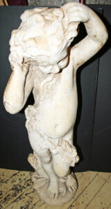 GARDEN ITEMS: Sandstone Splash Block 31″L, (1′ x 1′ x 1′) Square Sandstone Block, 5′ Stone Garden Bench, Concrete Garden Angel Resting On Sandstone Base, Wrought Iron Shoe Scraper w/ Concrete Base, Large Concrete Birdbath (2′ x 4″H 31″D), 4′ & 10′ Cast Iron Troughs, Wooden Wheelbarrow, Cast Iron Pot, Wrought Iron Chaise Lounge, Pair of Concrete 2′ Garden Urns & Other Urns, Concrete (3′ x 3′) Garden Table w/ Wrought Iron Chairs, Cast Iron Frog, Rabbit, & Bird Figures, Pair of Wrought Iron Patio Chairs, Cement Chicken Garden Ornament, Concrete Bird Bath, Redware Pottery Cat & Redware Planters, Rooftop Tile Garden Ornament, Cincinnati The B. Rothschild’s Sons Co. Cast Iron Table Base, Agate Foot Tub, Wooden Feed Rack w/ Cow Painting, Various Amount of Outdoor Garden Planters, Terracotta Planters, Wooden Zebra 81″L Garden Statue, Metal Garden Table, Wooden Rhino 45″L Garden Statute, Metal Rubber Tire Wheelbarrow, Rubbermaid Two (2) Wheeled Garden Cart, Wooden Bench, Wooden Bell Tower, Cast Iron Butcher Kettle w/ Wrought Iron Handle, Wire Garden Trellises, Compost Bin, Animal Figures/Garden Statutes, Painted Concrete Bulldog (21″H x 25″L) – Broken Rear Leg, Other Items