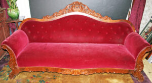 FURNITURE: 6′ & 15′ Mortised Wooden Porch Benches, Wooden One (1) Door Storage Cabinet, Wooden Drop-Leaf Tables, Painted Twig & Wood Table Stand, (6′ x 6″) Plank Seat Fiddle Back Settee, Pair of Adirondack Style Garden Chairs, Wrought Iron Table & Chair Set, Two (2) Drawer Two (2) Door Jelly Cupboard, Wooden Three (3) Compartment Box, Painted Plank Bottom Chairs, Rustic Taper Leg Table, Painted Wood Box, Wooden Two (2) Door Cupboard Base, Wooden Table w/ Overlapping Board Top (24″H x 54″L x 36″W), Bird’s Eye Maple Dressing Table w/ Taper Legs & Brass Pulls (48″L x 22″W x 37″H), Victorian Marble Top Stand 18″H, Ornately Carved Victorian Sofa w/ Crest Rail & Tufted Back 83″L, Assorted Twig & Wooden Plant Stands, Captain’s Spindle Back Arm Chair, Various Assorted One-Half (1/2) Spindle Plank Seat Chairs, Paint Decorated Victorian Dresser w/ Glass Pulls (49″L x 21″D x 29″H), Painted Victorian Dresser w/ Brass Pulls, Leather Tufted Sofa, Paint Decorated One (1) Drawer Dressing Table, Painted Victorian One (1) Drawer Wash Stand w/ Brass Pulls, Painted Butter Print Victorian Wash Stand w/ Brass Pulls, Paint Decorated Cottage Bed, Victorian Parlor Table, Mahogany Dresser w/ Oval Pulls, Metal & Marble Wrought Iron Lamps, Metal Two (2) Drawer File Cabinet, Balloon Back Arm Rocker, Four (4) Poster Canopy Rope Bed w/ Crotched Top, Red Stain Softwood Blanket Chest w/ Bracket Feet, Victorian Fainting Couch, Empire Transitional Chest of Drawers w/ Glass Pulls, Victorian Ladies Chair, Red Paint Poster Rope Bed, Ladder Back Reed Seat Arm Chair & Side Chair, Upholstered Wing Back Chair w/ Upholstered Ottoman, D.R. Dimes Nine (9) Spindle Hoop Back Windsor Chair, Two (2) Drawer Over Three (3) Drawer Dresser, Fall Front Desk Top w/ Fitted Interior, Red Stain Table w/ Overlapping Board Top, Two (2) Drawer Work Stand w/ Glass Pulls, Painted Tramp Art Stand, Wrought Iron & Cast Metal Bridge Floor Lamps, Painted Softwood Blanket Chests, Set of Paint Decorated Half Spindle Plank Seat Chairs, Victorian Gentleman & Ladies Chair, Large Dining Room Table w/ Turned Legs, Painted Dressers, Chests. & Stands, Empire Chest of Drawers, Empire Marble Top Parlor Table, Modern Two (2) Part Blind Door Corner Cupboard, Other Items