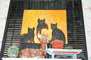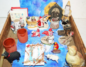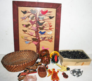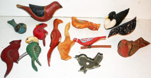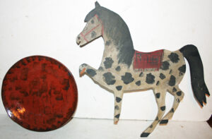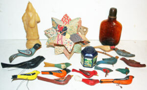WOOD CARVING: Carved Spread Wing Eagle, Carved Lion, Carved Fowl Match Safes, Wooden Trinket Shelf, Christmas Spinner Candle Carousel, Walter Gottshall Chic Storage Jar Cover, Wooden Carvings – Animals, Set of Three (3) Carved Wooden Dogs, Walter Gottshall Carved Dog, Various Assorted Wooden Carved Birds, Wooden Paint Decorated Eggs, Animal Wood Cut-Outs, Miniature Rooster Carving Daniel Strawser Jr. 1996, Wooden Cherub On Cross, Wooden Tramp Art Trinket Boxes, Footstool, Other Items