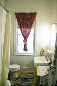 - Bathroom/Laundry Area (5’10” x 9’6″) – Toilet, Fiberglass Laundry Sink, Washer/Dryer Hookup, Painted Tongue & Groove Board Walls, Painted Wood Floor, Access to Rear Side Porch