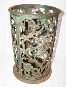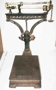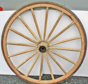 Medium Size Copper Kettle w/ Wrought Iron Handle, Brass Floor Lamp, Fancy Hanging Chandelier, Pr. of Painted Half Spindle Plank Seat Charis, Country Store Fairbanks Countertop Scales w/ Weights, Large Wooden Wagon Wheel, Cast Iron Brunnerville Foundry Pump Trough On Legs, Buch Elizabethtown Pennsylvania Wooden Wheelbarrow w/ Sides, Large Wooden Wheelbarrow, Wooden Berry Crate, Hershey’s Winross Trucks, And Other Items