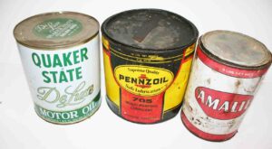 Advertising Cans/Tins: Porcelain Danger High Voltage Sign, Metal Pegasus Mobil Sign, Graphol Penetrating Lubricant, Armor Lube HD Motor Oil, Prestone Anti-Freeze, Marvel Mystery Oil, DuPont Cooling System Sealer, Archer Linseed Oil, STP Oil Treatment, Quaker State Oil, Sunoco Brake Fluid, Kendall Oil, Pyroil, Rev Gasline Anti-Freeze, Pyroil, Esso Handy Oil, Lock Ease Lock Fluid, Sinclair, Whiz, Sunoco Imperial Motor Oil Cans, Quaker State Motor Oil, Pennzoil Lubricant Cans, Amalie Grease Cans, E-Z Stamping Powder Tin, Laiglon French Dry Cleaner Tin, Texaco Cigarette Lighter, Marlboro Cigarettes Double Sided Flange Sign, American Fire 1810 Philadelphia Metal Sign, Porcelain Elevator Sign, Federal Hi-Power Shells Advertising Tin Sign, Gulf Free Air Tin Sign