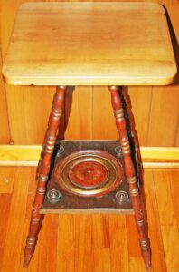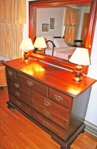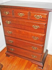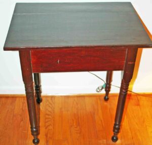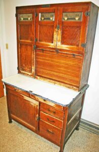 Furniture: McDougall Oak Kitchen Cabinet w/ Tamber Door (Flour Sifter, Enamel Top), Four (4) Pc. Taylor Jamestown Cherry Bedroom Suite (Double Bed, Chest Of Drawers, Dresser w/ Mirror, Nite Stand), Five (5) Pc. Retro Bedroom Suite (Double Bed, Chest Of Drawers, Vanity w/ Mirror, & Two (2) Nite Stands), Mahogany Duncan Phyfe Drum Table, Depression Era Buffet, L. Hitchcock Stencil Spindle Back Armchair (Years Of Service United States Historical Society), Pair Half Spindle Plank Seat Chairs, Overlapping Top Table W/ Turned Legs, Pair Walnut End Tables w/ Drawer & Turned Legs, Three (3) Pc. Cherry Coffee & End Tables, Poker Game Table, Grain Decorated Blanket Chest w/ Till & Turned Feet, Softwood Dovetailed Blanket Chest w/ Turned Feet, Softwood 1-Drawer Washstand, Paint Decorated Arrow Back Plank Seat Chair, Arrow Back Plank Seat Chair, Oak Flat Top Desk, Oak Taboret Table, Oak Parlor Table, Oak Butterprint Washstand w/ Gallery & Brass Pulls, Oak Pressed Back Rocker, Stereo Sliding Glass Cabinet, Two (2) Pc. Upholstered Sofa & Chair w/ Ottoman, Upholstered Wing Back Chair, Upholstered Recliner, Metal 2-Door Cabinets, Metal Folding Tables, Microwave Stand, Folding Kitchen Stool, Wooden Porch Rocker, Wooden Red Stain Porch Bench, Whirlpool Microwave Oven, Westinghouse 2-Door Refrigerator, Maytag Washer & Dryer, Many Other Items