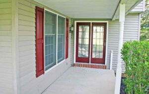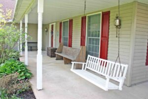 - Front L Shape Porch (7’10” x 36′ & 6’6″ x 21″) – Vinyl Ceiling, Concrete
