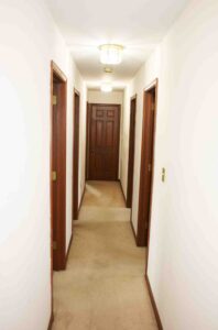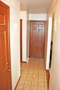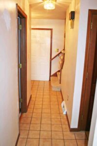 - Hallway (3′ x 15’6″) – Painted Walls, Tile Floor