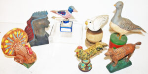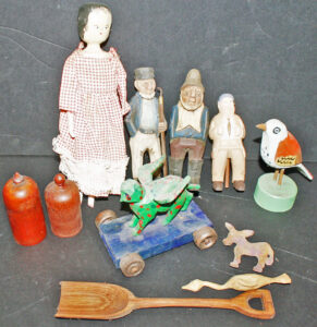 WOOD CARVINGS: Ride On Colonel 11″H DSJR 2014, Parrot Perched On Ball 15″H Pencil Signed Walter & June, Eagle 6″H DSJR 2000, Luke Gottshall 24″L Wooden Horse Drawn Hearse w/ Base, Fan Tail Rooster 16.5″H Walter J. Gottshall 1973, Large Shimmel Style Spread Eagle w/ Elaborate Cross Hatching (16″H x 16″ Wing Span) Unsigned DSJR, Painted Decorated Wood Lift-Lid Box (10″ x 7 1/2″ x 7), Wooden Painted Sitting Cat 10″H Aug. Walter Gottshall In Pencil, Wooden Painted Sitting Cat 9″H D&BS 75 PA., Painted 5 Bird Tree 11″H WJG 75, Full Bodied Egret w/ Cross Hatching 26″H WJG Xmas Of 76 PA., Painted Full Bodied Bird On Base 9″H In Pencil To Barbara From Mother & Daddy, Cardinal Perched On Base 6″L x 6 1/4″H L.W.G. & F.K.G. Gottshall 1975 (Base With Paint Loss), Full Bodied Striped Cat 4″L DDS 72 PA., Cat & Chicken On Base 5 1/2″L D – BS 80, Painted Angel 13 1/2″H WLG June 87, White Dove On Base 5 1/2″H L.W.G. & F.K.G., Chicken w/ Chick 1986 Folk Art By Menno 1986, Painted Bird d & BS. 81 5″L, Primitive Folk Art Bird 4 1/4″L, Painted Rooster & Chicken (5 1/2″ x 6″L) D & BS 78 PA, Folky Painted Distlefink Resting On Cloth Ball Porcelain Base 14″H, Black Bird On Base 8″L D & BS 78 PA, Carlton 1992 Bird Tree (4 Bird) Wood Carving, Carved Duck D.S. Junior 2022, Dier Wechter Carved Angel, Wood Carved Bird w/ Wire Feet, Wood Carved Bird w/ Cloth Wings Perched On Wooden Oval Base, Carved Lion 6372, L.W. & F.K. Gottshall Wood Carved Bird (Missing Wing), Daniel Strawser ’72 & ’74 Wood Carved Eagles, Daniel Strawser Wood Carved Squirrel & Dog, Cat & Ball Pull Toy – “Merry Christmas June & Walt”, Sitting Cat – WJG ’77, Giraffe On Wheels – WJG ’87, Father Christmas In A Carved Wooden Shadow Box, Miniature Cat Pull Toy – June & Walt 2009, Wall Hanging ” Heart & Tulips”, Rabbit Tramp Art Wall Box, Carved Angel, Bird Tree w/ Tramp Art Base 32″H, Carved Rabbit Emerging From Woven Basket, Gotshall Bird Pull Toy On Wheels, Klaus Berlin ’84 Carved Bird, Carved Sailors, D. Shaw Grain Shovel, Extremely Rare Walter Gotshall Bird Tree w/ 17 Birds 71″H, Eugene Ownby Carved Shoe, Walter Gottshall 7 Blacks Birds In Tree 36″H, Tim Strawser 2000 7-Black Birds In Tree 47″H, Walter Gottshall “Pumpkin & Black Bird, Walter Gottshall “Pumpkins & Black Birds”, Dan Strawser Dalmation Dog, Daniel Strawser Tramp Art Style Dove, Gottshall Paint Decorated Bee-Hive Turning, Walter Gottshall Wooden Cow w/ Pail Storage Jar Cover w/ Jar, L.W.G. Luke Bill Holder, M. Combs 09-2247 Oblong Wooden Trencher – Bottom is Personalized, Walter Gottshall Black Bird Pumpkin Carving, Walter Gottshall Father Christmas 12.5″H Figure To June Christmas 77, June & Walt Gottshall Santa Standing On Platform 6.5″H Xmas 1986, Wooden Santa Figure Storage Jar Cover 8″H, June & Walter Gottshall Santa Standing On Platform w/ Bag 6.5″H Xmas 85, Painted Angel, Walter Gottshall Hippo 1985, Luke Gotshall Horse Drawn Wagon With Family Riding In 25″L, Blackbird Perched On Pumpkin WJG, Miniature Decorated Turned Saffron, Miniature Bird Sitting On Carrot, Tramp Art Two (2) Drawer Trinket Chest W.L.G. “Love You June” 1984 13″L, Wood Carved Rabbit & Chick Storage Jar Lids
