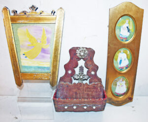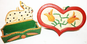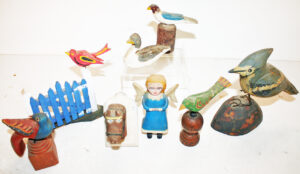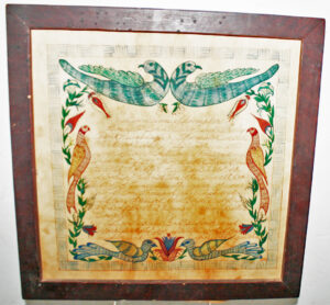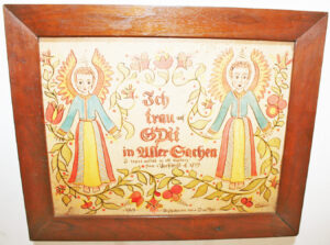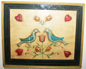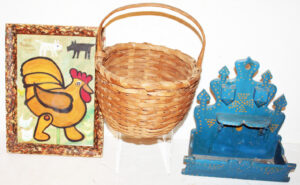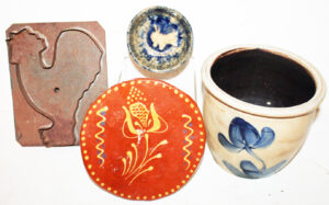 FOLK ART: Sheet Metal Indian Shooting Bow w/ Arrow (22″H), Painted Bird On Base 5″H L.W.G. 73, Painted Bird On Base 4″H L.W.G. 1980, Painted Turkey In Pencil AM 5 3/4″H, Full Bodied Dog With Cross Hatching 6 1/2″L July 11th 2000 Happy Birthday Mom With Love Timmy, Dove Resting On Base 6 1/2″L Merry Christmas Mom I Love You DSJR 2007, Indian With Headdress 6 1/2″H, Painted Full Bodied Rooster (11 1/2″H x 13″L) Xmas Of 99 Walter & June Gottshall, Full Bodied Blue Jay Bird On Base 7 3/4″H Joseph R. Dell 3 – 1 – 00, Cardinal Resting On Gate Post 6 1/4″H L.W.G. 73, Horse Head On Plaque 3 3/4″H L.W.G. 74, Painted Bird On Base 5 1/4″H J.B. 2000, Full Bodied Distelfink On Base 5″H WJG 80, Folky Bird On Stump 4″H L.W.G. 71, Full Bodied Angel 6″H W.L.G. 78, Folky Pig w/ Tongue Hanging Out (8′ x 16″L) Walt & June Gottshall 82, Luke W. Gotshall Pair Of Cloth Cut-Out Distelfink Resting On Floral Branch (Overall 8.5″ x 10.5″), Pencil On Verso Fannie Died Jan. 25 1976, Luke W. Gotshall Pair Of Cloth Cut-Out Rooster & Chicken On Floral Branch (Overall (9.5″ x 11.5″), Luke W. Fannie K. Gotshall Folky Cloth Cut-Out Bird Tree (Overall 11.5″ x 13.5″), Pair Of Cloth Cut-Out Distelfinks On Branch (9″ x 11″), Painted Wooden Amish Figures, Folk Lore Picture Cloth Pieced Birds Perched On Branch (Overall 20″ x 23″), Grouping & Decorated Personalized 1970’s Folk Art Eggs, Luke Gottshall January 1989 Framed Cloth Bird Cut-Outs, “Black Cats & Pumpkins” Barbara Strawser w/ Cloth Cut-Out Cats, Grapevine Basket w/ Pair of Distelfinks, Carved Distelfink Resting On Cloth Ball Pedestal, Bird Folk Art Pin Cushion, C. N. Foltz 1978 Grain Decorated Framed Cats, Heart Cut-Out Match Safe, Lidded & Painted Large Saffron Turning, George Wells Cow Hooked Rug, Two (2) Large Cloth Dolls w/ Antique Quilt Dresses, Hattie Klapp Brunner Hand Drawn Valentine “To The Valentine of Valentines”, Wooden Darkie String Pull Toy Made by Abram Klapp 1930, Daniel Strawser Saffron Cup Turnings, C. Ned Foltz 1/9 1979 “Rabbit”, Pair of Distelfinks & Tulip Painted Wood Carvings “To June From Walter”, Watercolor Gwen Shoumaker Birth Certificate, Water Color Fraktur, Water Color Fraktur w/ Distelfink, Fan, Floral, & Tulips, Painted Dome Lid Box (13.5″L x 8.5″W x 10.5″H), Oval Tramp Art Frame – Timothy Strawser 19.5″ Overall Dimension, Tramp Art w/ Leaf Motif Frame 12″, Two (2) Faux Decorated Framed Water Colors, Box of Fabric Made Chickens – Made By Fanny Gottshall, John Martin 1988 Wrought Irn Candlestand & Snuffer 9″H, A Various Assortment Of Tinware Cookie Cutters – Running Fox, Horseback Rider, Birds, Double Handle Contemporary Center Bowl 13″D L. Detrich 97, Cloth Birds & Chicken, Wooden Donkey Pull String Toy, Hanging Large Cut-Out Running Rabbit, Framed Luke Gottshall Painted w/ Cloth Birds Applied – Purchased From Hattie K. Brunner, Painted Tin Spotted Horse 26″L, Painted Tin Wall Sconce, Painted Wooden Comb Box, Sheet Metal Prancing Horse, J. Murphy Wooden Blue Paint Planter Box w/ Turned Feet – Bottom Personalized, Tramp Art Moon & Star Comb Box, and Bird, Porcelain Knob Heart Picture Frame, Painted Tin Running Horse, Wooden Branch w/ Four (4) Foltz Birds Perched In The Branches, Folky Cloth Cut-Out Chickens On Floral Branch w/ Painted Border Frame Luke W. Gottshall 8-22-79, Various Oval & Square Tramp Art Frames, Tramp Art Crosses (1) w/ Wooden Leaf Base