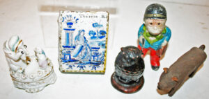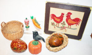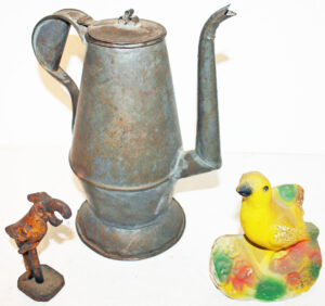 ANTIQUES: Original Advertising Double Sided Sign w/ Wood Border “Antiques The Tulip Shop Hattie Brunner 1/4 Mile” Original Overall (37 1/2″ x 45″) Stahl, Sheet Metal Gooseneck Coffee Pot 11″H, Cast Iron Parrot Bottle Opener, Chalkware Bird & Floral Doorstop, Cast Metal Arcade Shooting Duck w/ Bracket Feet 7 3/4″L, Cast Metal Bird Sitting & Flying Bird Each 4″L, Ingram Eight Day Shelf Clock w/ Painted Pendulum Door 16″H, Tramp Art Box, Wooden Comb Box, Butterfly Hanging Mail Holder Box, Wooden Porcelain Knob Wall Letter Rack, Wallpaper Decorated Dome Lid Box w/ Tin Clasp 16″L, Tin Mayo’s Cut Plug Tobacco Brownie Tin, Cast Metal Cherub Mantle Clock, Bisque Figure Miniatures, “Mouse In Shoe”, Tin Lion Pull Toy, Risque Mermaid Turtle Compote, Staffordshire Figure Pin Dish & Figures, Enamel Decorated Wines, Old Eyeglasses, Paper Mache Fireside Cat, Segars Cast Metal John W. Merriam & Co. Bulldog, Distelfink Walking Stick, Redware Fox Walking Stick, Carved Cane, Small Slide Lid Box, Victorian Metal Sewing Bird, Brass Pie Climper, J.T.S. Pewter Candlesticks, Brass Candlesticks, Folk Art “Nick’s Sticks” Decorated Cigar Box, Stick Sheep, Cast Iron Amish Figures, Paper Mache Cow & Donkey, Onion Skin Swirl Shooter Marble, Aqua Shooter Marble, Marbles, Tin Cookie Cutters, G & P & Horse Rosettes, Replica Christmas & Easter Postcards, Color Litho Print “Fanny” Wooden Letter Wall Rack – Personalized On Back “To Gwen From Ned 1988”, Tin Cookie Cutter – Cat, Fish, Birds, Heart, Large Wooden Bowls – 1 Painted w/ Black Bird, Vintage Victorian Train Yard Fencing, Floral Color Litho Print, Gilbert “8 Day” Wall Clock w/ Cast Metal Eagle Finial, Tightly Woven Oblong Basket & Wire Basket, Nippon Enamel Decorated Vase, Lux Cast Face Wall Clock, Chalkware Cats Reclining, Tin Five Hole Candle Mold, Decorated Warwick China Handled Pitcher, Redware Hanging Flower Pots w/ Saucers, Redware Flower Pot w/ Saucer, Redware Bulbous Form Bank, Needlework “Pair of Birds & Trees” Linen Show Towel, Wooden “Home Sweet Home” Inlaid Serving Tray – Reverse Personalized, Cardboard 1987 & 89 Cardboard U.C.C. Picnic Posters, Brass Dog Nutcracker, Milkglass Rooster & Chicken Hen On Nest, Kitchen Stick Spatter Teapot & Plates, Paper Mache Rabbit Candy Container, Bisque Pigeon & Dove, Staffed Shire Dog, Miniature Fluid Lamp, Shell Art Lidded Box, Oval Frame, & Match Safe, Decorated Ironstone Morning Glory Teapot, Cup & Saucer, Ironstone #20 Decorated Cups & Saucers, Child’s Stick Spatter Cup & Saucer & Plate, Primitive Carved Bugle Boy & Drummer Boy, Wooden Horse w/ Saddle, Lion Reclining, C. Musser Miniature Shaking Fork, Two (2) Wooden Needle Cases, D. Shaw 5-Tied Shaking Fork, Heart Design Rug Mat, Oriental Area Rug (4′ 11″ x 10′ 1″), Alabaster Type Grape Clusters, J.T.S. Tom Stauffer Pewter Spoons & Porringer, Royal Holland Pewter Plates, 2-Gallon H.P. Company Hawthorn PA Stenciled Stoneware Jug, Henderson Stoneware Footwarmer, Schoenhut Horses, Wolverine Tin Litho Horse Race Carousel, Majolica Plate, Pitcher, & Cake Stand, Aqua & Clay Marbles – Some Shooters, Adam’s Rose Cups & Saucers, Small Bisque Figurines, Blown Glass Decanter, Tramp Art Angel Trinket Box, Beaded Purse Leeds Saucers, Milkglass Easter Greeting Plates, Chiclets Advertising Spoons, Celluloid Animals, Ducks, & Swans, Cloth Frog, Belgium Stick Spatter Bowls, Pair of Staffordshire Sitting Dogs 8″H, Japan Tin Litho Wind-Up Toys w/ Boxes, Tin Litho Wind-Up Toys – Wind-Up Drummer, Lady Bug, Monkey Tricycle, Clown w/ Donkey & Cart, Kreamer Copper Tea Pot, Various Assortment of Small Hand Woven Baskets – Rye Baskets, Splint Handled Baskets, and Splint Handled Cheek Baskets, Splint Handled Woven Market Basket, Tin Horns, Punch Tin Hanging Candle Lantern, Sheet Metal Fish, Flemish Art Wooden Handkerchief & Glove Boxes, Large Glass Storage Jar w/ Tin Chicken Finial, Flemish Art Wooden Plant Stand 16″H, Painted Tramp Art Stand 25″H, Painted Tramp Art Plant Stand w/ Bun Feet 26.5″H Tim Strawser 2002, Victorian Hanging Letter Holder, Various Sized Jointed Bears, Oval Wallpaper Box, Christmas Kugel, Staffordshire Pin Dishes, Bisque Figurines, Cow Creamer, Soft Paste Teapot w/ Gooseneck Spout, Rye Pottery England Rabbit Figure, Leeds Dinner Plates & Medium To Large Oval Platters, Large Blown Easter Eggs, Slag Glass Dove Covered Compote, Milkglass Lion Covered Compote, Victorian Cast Metal Base Candle Holders, Small Christmas Tree Ornaments, Copper Heart & Square Bundt Cake Molds, Copper Teapot, Stoneware Rolling Pin, Wrought Iron Pie Crimpers, Double Bird Markers Punch Tin Heart Shape Cheese Mold, Tinware Muffin Pan, Long Wooden Handled Dipper & Stirrer, Oval Rye Straw Handled Basket, Various Assorted Wooden Ladles, Dippers, & Spoons, Primitive Clipper Ship With Sail w/ Ocean Wave Like Wooden Base 24″L x 11″W, Wooden Paint Decorated Shadow Boxes, Miniature Tinware Fat Lamps, Candle Mold, & Pig, Painted Tramp Art Mirror & Comb Box, Child’s Size Paint Decorated Drop Leaf Table w/ Two (2) Arrowback Plank Seat Chairs, Wooden Horses w/ Pickett Fence Pen, Wooden Paint Decorated Witch w/ Broom 29″L, Blue Paint Tramp Art Trinket Box, Public Sale Broadside Mary Klapp