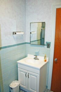 - Bathroom (7’2″ x 8’6″) – Tiled & Painted Walls, Vanity, Tiled Floors