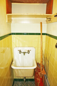 - Janitor’s Closet (4′ x 2’9″) – Large Sink, Tiled & Painted Walls, Tile Floor