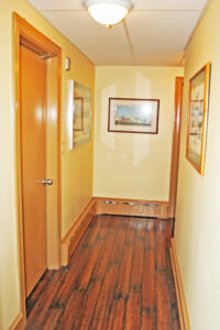- Hallway (21’10” x 4’3″) – Painted Walls, Laminate Flooring, Drop Ceiling, Electric Baseboard Heat